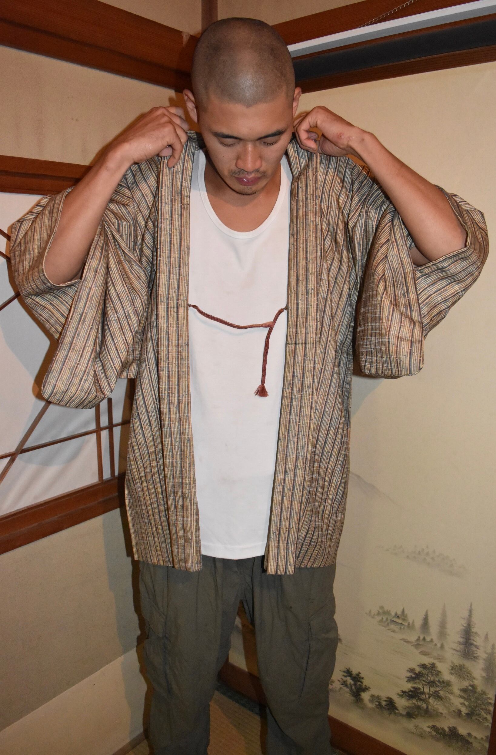 Enjoy the comfort of natural materials and the beauty of traditional craftsmanship with this unique haori.