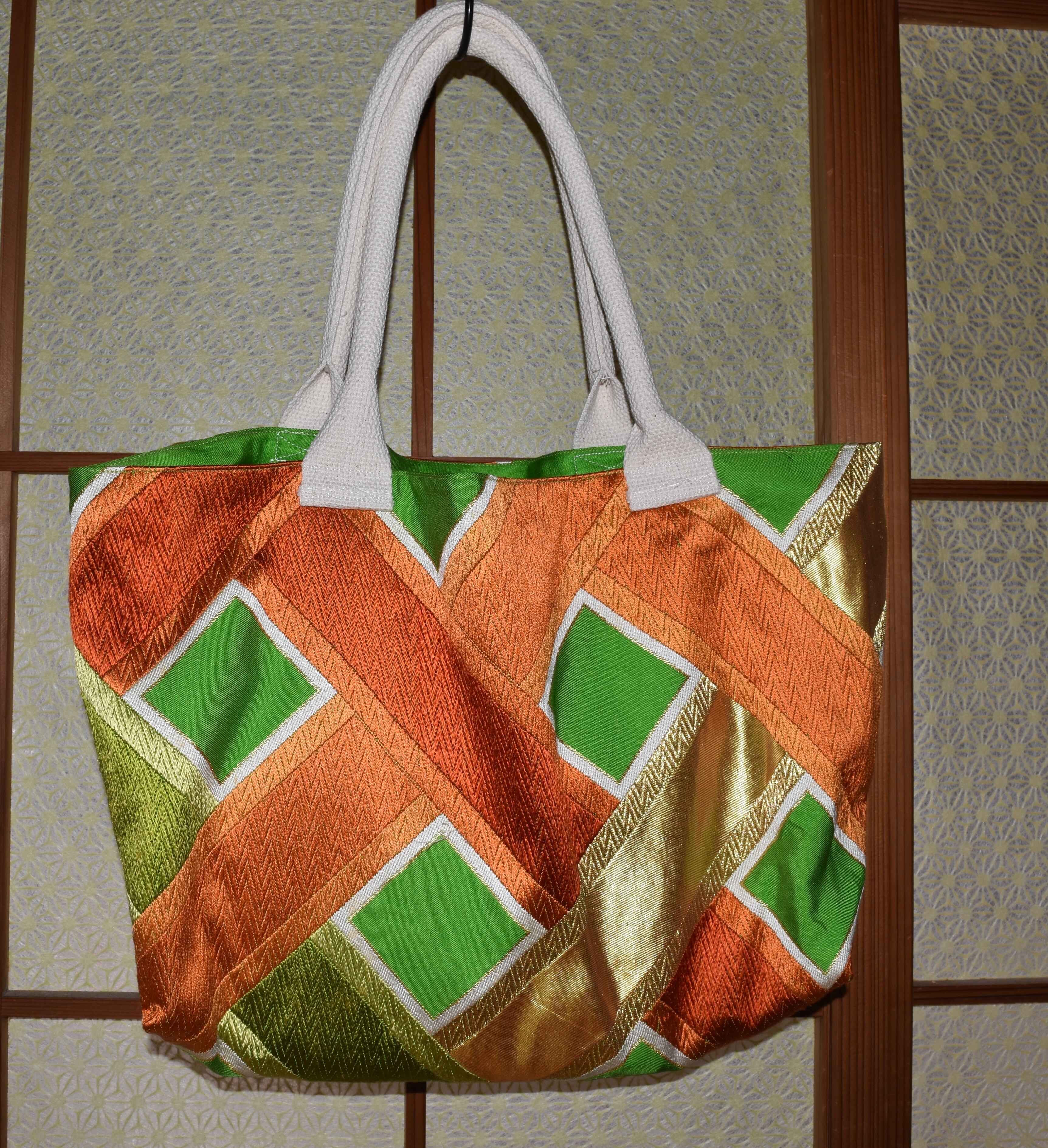 帯バック【橙彩草】 - リメイクの魅力が詰まった特別なバック この帯バックは、昔の帯をリメイクして作られた、唯一無二のアイテムです。一点ものの特別感を存分に楽しめる、デザインや色合いが異なる個性的なバックです。和のエッセンスを取り入れたこのバックは、様々なスタイルに合わせやすく、普段使いにも特別な日にぴったりなアイテムです。 性別や年齢を問わずお使いいただけるのが、このバックの魅力です。和の伝統が息づくデザインが、あなたの個性を引き立て、ファッションをより特別なものに演出します。 素材とお手入れ方法 この帯バックは、天然素材を使用しており、丈夫でありながら軽やかな使い心地が特徴です。お手入れの際は、手洗いし、直射日光を避けた日陰で干すことをおすすめします。大切に扱っていただくことで、長くお楽しみいただけます。
